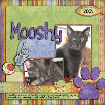 On the Scrapmatters blog, they have “Template Tuesdays” and they were talking about nicknames and posted a template freebie. I couldn’t wait to use that and what a cool idea because all of our animals go by their nicknames more than they do their real names!